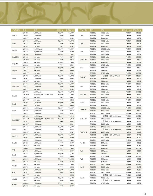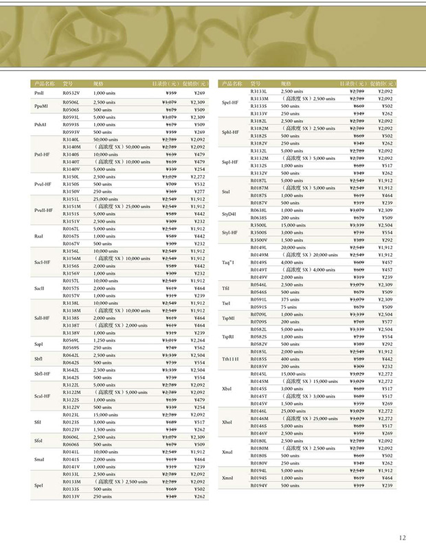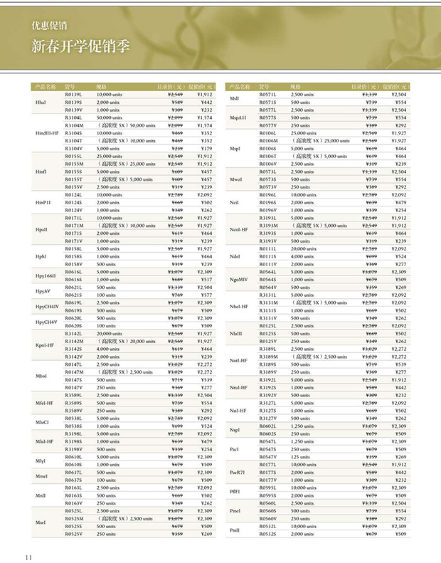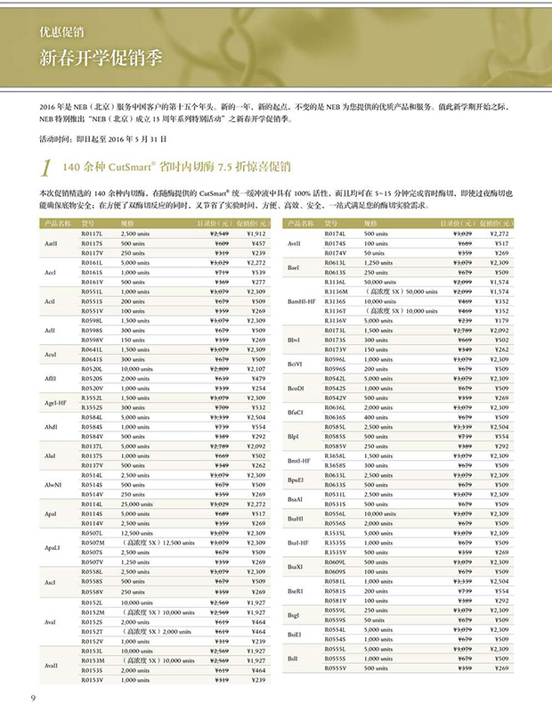1、140 種常用省時內(nèi)切酶 7.5 折促銷
