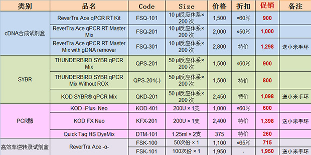 cDNA合成試劑盒,實(shí)時(shí)熒光定量PCR試劑盒,PCR酶等低價(jià)促銷