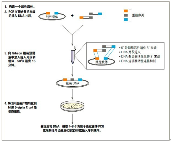 5-alpha E. coli 感受態(tài)細(xì)胞,經(jīng)過優(yōu)化,該試劑盒在一個(gè)試管中經(jīng)等溫反應(yīng),可以高效的將 1 或 2 個(gè)組裝片段插入到任何載體,完成組裝和克隆。更多詳細(xì)信息請參考 2013﹒2014