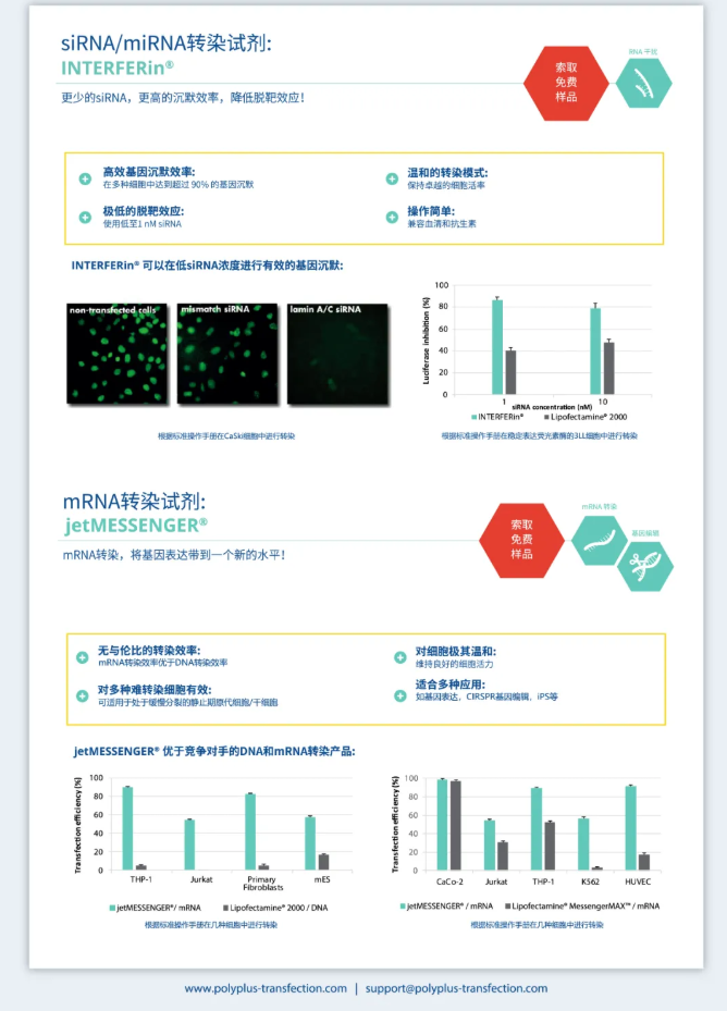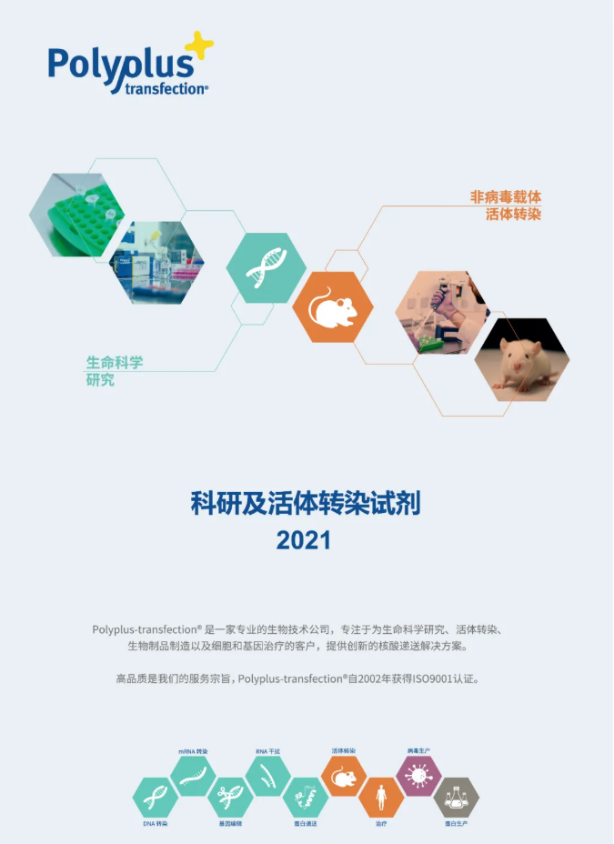 PolyPlus-transfection是一家位于法國(guó)的生物技術(shù)公司,目前已經(jīng)通過(guò)了ISO9001:2000質(zhì)量體系認(rèn)證。該公司擁有20年的的轉(zhuǎn)染試劑研發(fā)經(jīng)驗(yàn),已經(jīng)開(kāi)發(fā)了一系列的轉(zhuǎn)染試劑,如:基因的體內(nèi)和體外轉(zhuǎn)染試劑、寡核苷酸轉(zhuǎn)染試劑和siRNA轉(zhuǎn)染試劑等,可以根據(jù)不同的需要獲得穩(wěn)定或瞬時(shí)的轉(zhuǎn)染效果。并且提供基因和細(xì)胞治療解決方案中關(guān)鍵步驟GMP級(jí)別高質(zhì)量的轉(zhuǎn)染試劑。