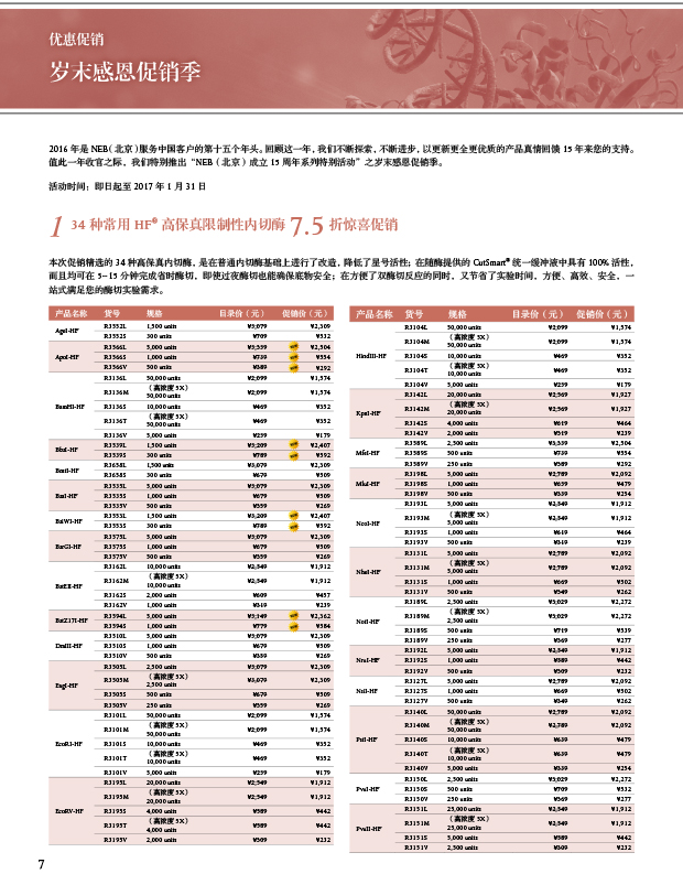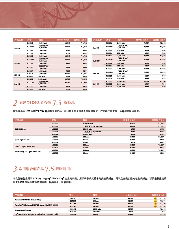 1. 34 種常用 HF? 高保真限制性內(nèi)切酶 7.5 折驚喜促銷