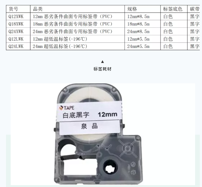 適用標簽帶:多種連續(xù)標簽寬度、耐低溫標簽