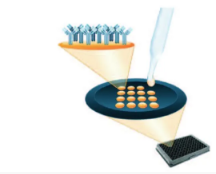 → 自動液體裝卸機(jī)在96孔板沒孔中打印20-50nL的點(diǎn)用來包被抗體
