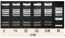 1 μl SalI 5 分鐘內(nèi)消化 1 μg DNA,結(jié)果顯示長(zhǎng)時(shí)間酶切或過(guò)夜 (O/N) 消化沒(méi)有核酸酶污染。