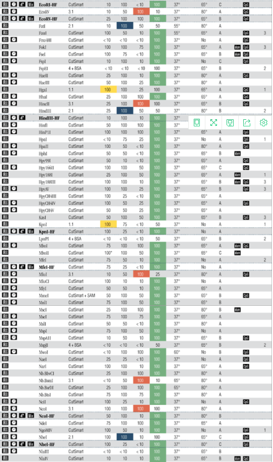 A. 是的,超過(guò) 200 種限制性?xún)?nèi)切酶(包括高保真限制性?xún)?nèi)切酶)在 CutSmart 緩沖液中有活性。當(dāng)建立雙酶切反應(yīng)時(shí)有很大優(yōu)勢(shì)。