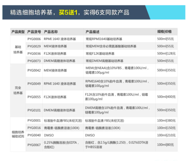 ? 精選細(xì)胞培養(yǎng)基,買5送1,實得6支同款產(chǎn)品。