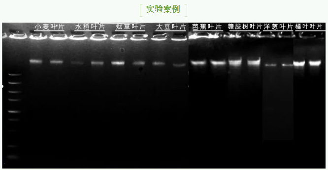 用灣區(qū)試劑盒按說明書對50mg植物樣本樣本進(jìn)行DNA純化,條帶單一,清晰。