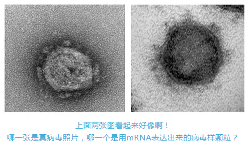 文章顯示,研發(fā)人員采用體外轉(zhuǎn)錄mRNA合成技術(shù),將表達(dá)病毒SARS-CoV-2蛋白N、M、E和S轉(zhuǎn)入細(xì)胞,進(jìn)行表達(dá)篩選,并通過蛋白自組裝,成功獲得了不含RNA內(nèi)核的病毒樣顆粒(virus like particle,VLP)。電鏡照片清楚地顯示了病毒外殼中由S蛋白構(gòu)成的“皇冠”,這也正是病毒進(jìn)行細(xì)胞侵襲的關(guān)鍵部分。將mRNA疫苗遞送到體內(nèi)后,表達(dá)的病毒樣顆??杉せ蠲庖呦到y(tǒng),產(chǎn)生有效結(jié)合病毒的中和抗體。